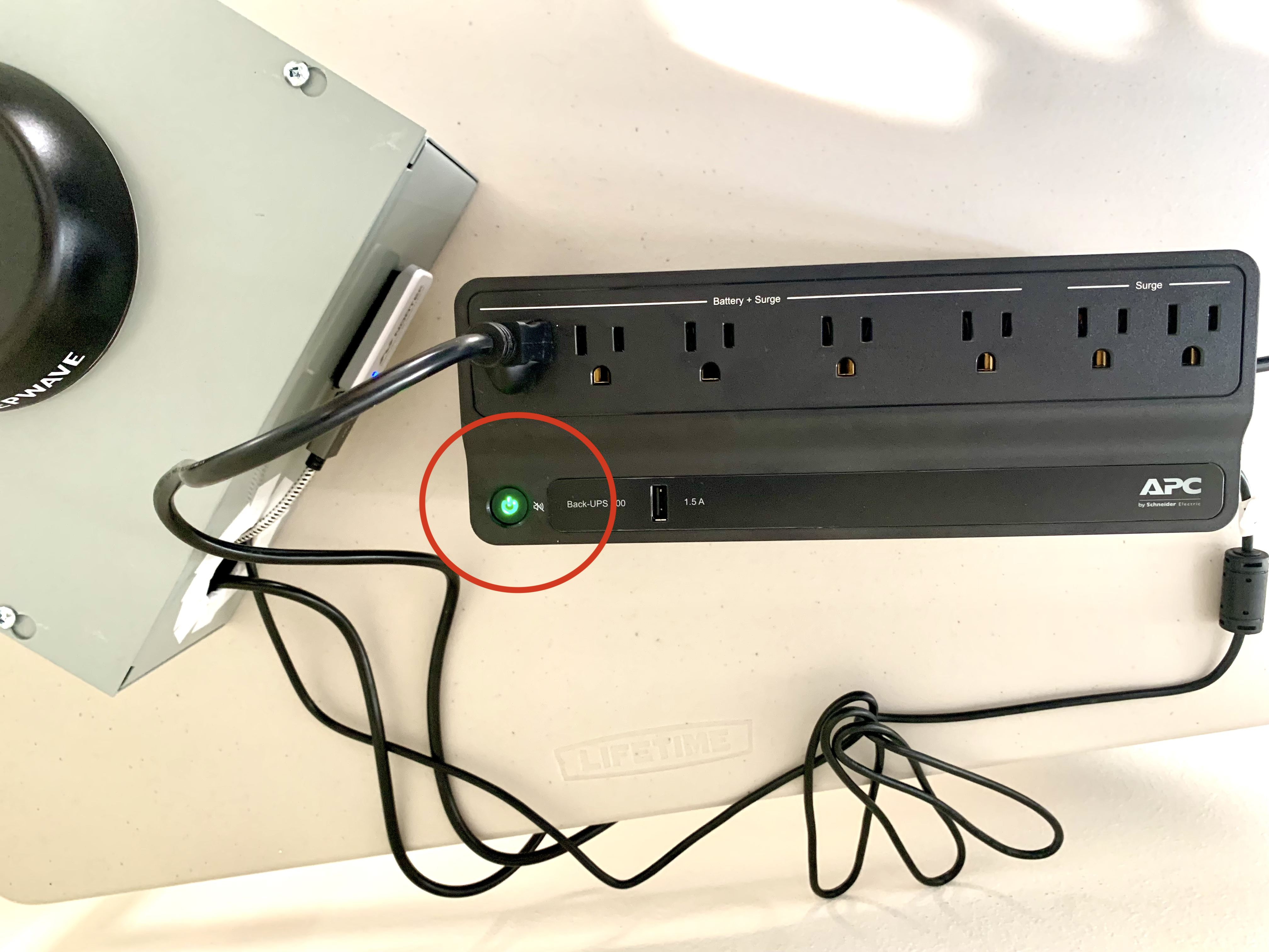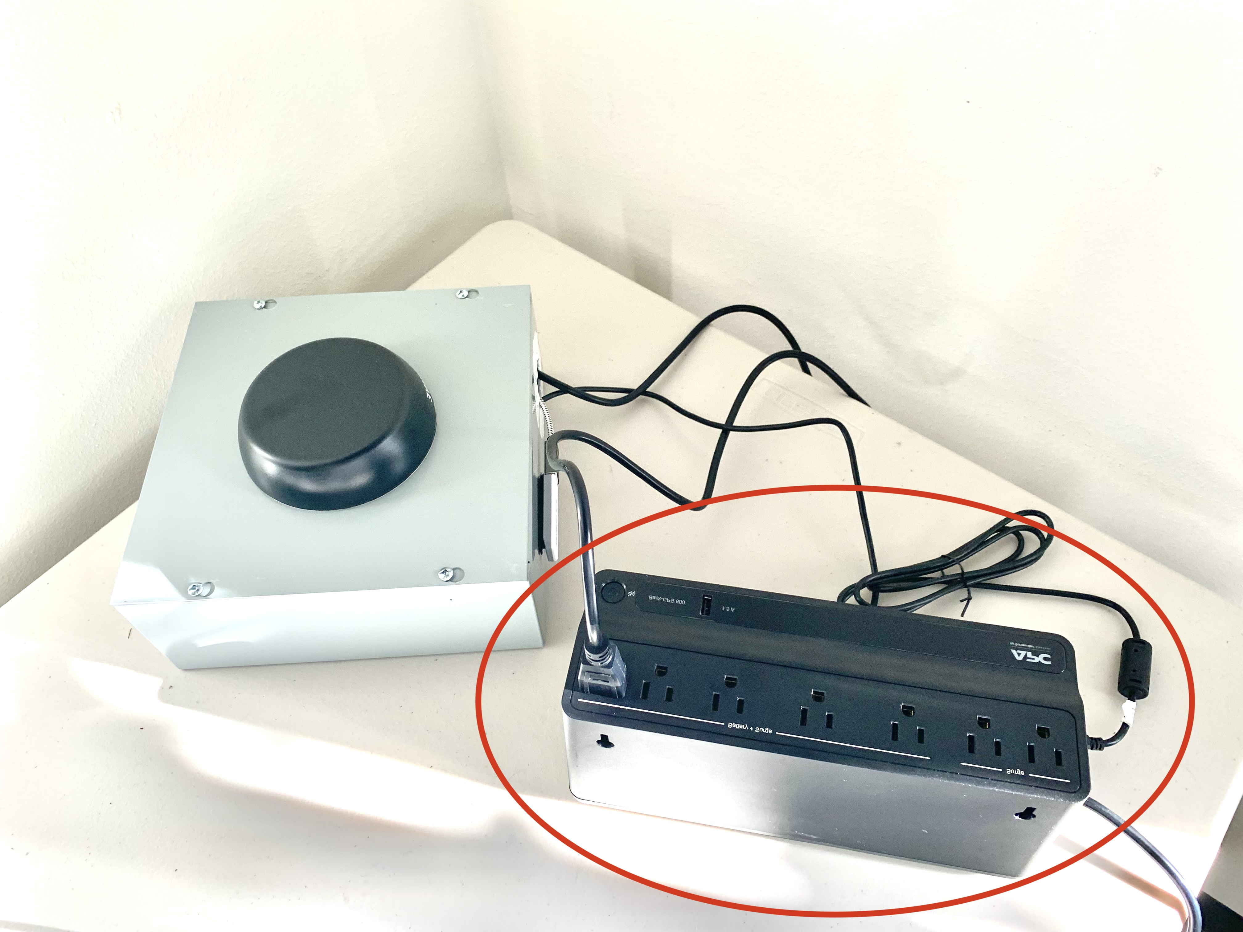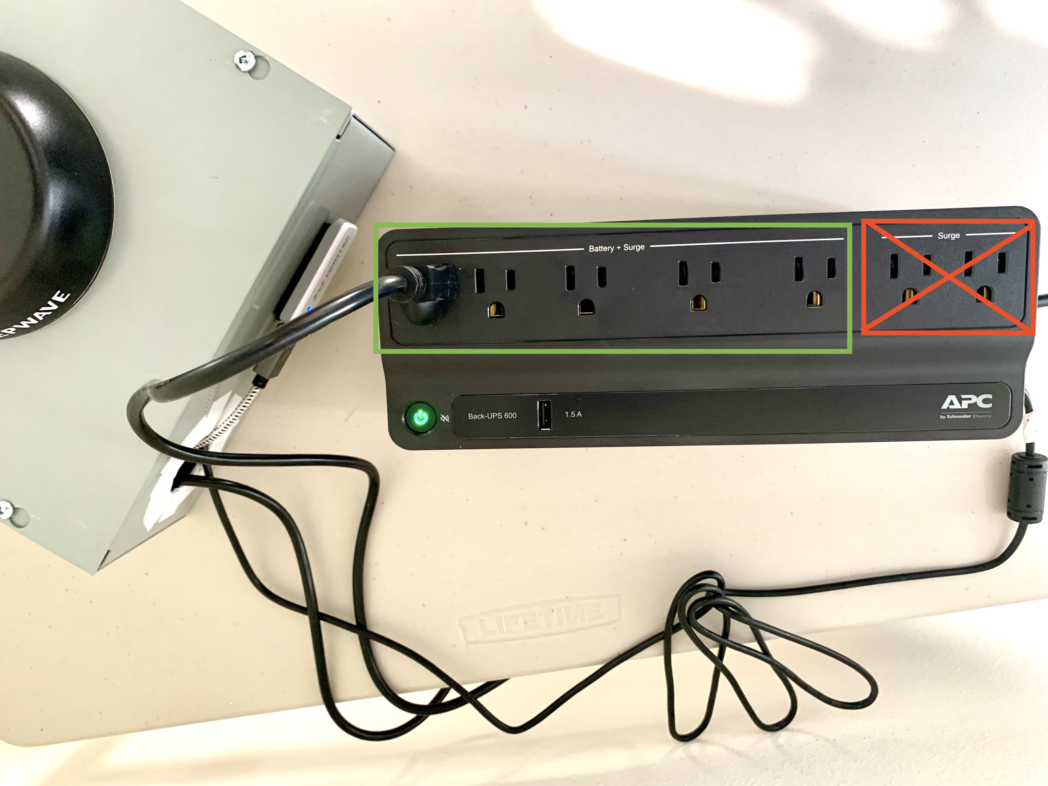 First, make sure the Hearo Hub box is plugged into the battery backup, and that it is plugged into one of the slots that is marked "Battery + Surge". Do not plug the Hearo Hub box into the spots marked "Surge" only.