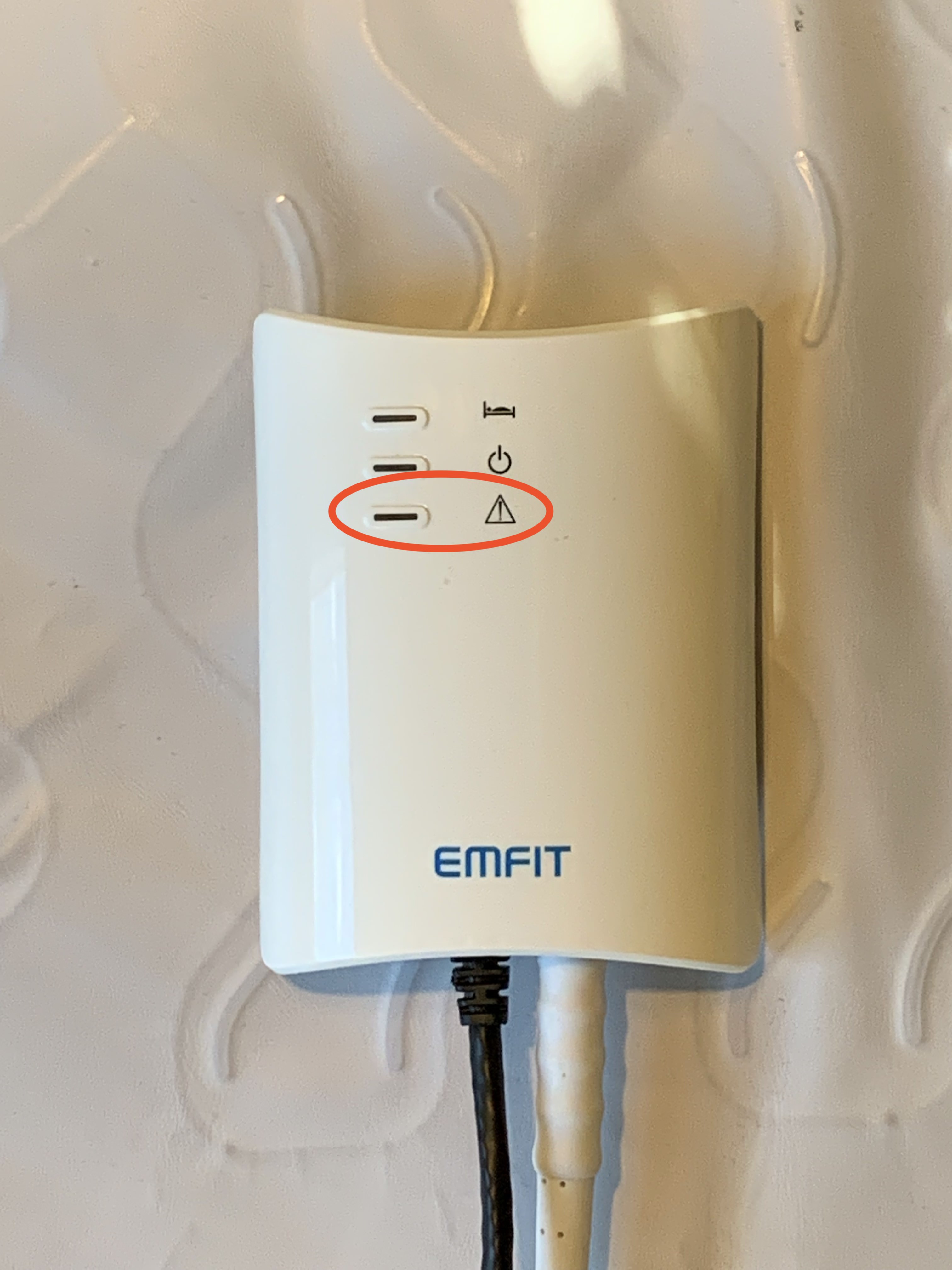 Next, if your mat is not sending messages when you believe it should, check that it has power. You can see the power indicator on the control unit. There is a blue light that blinks when there is power being channeled to the unit.