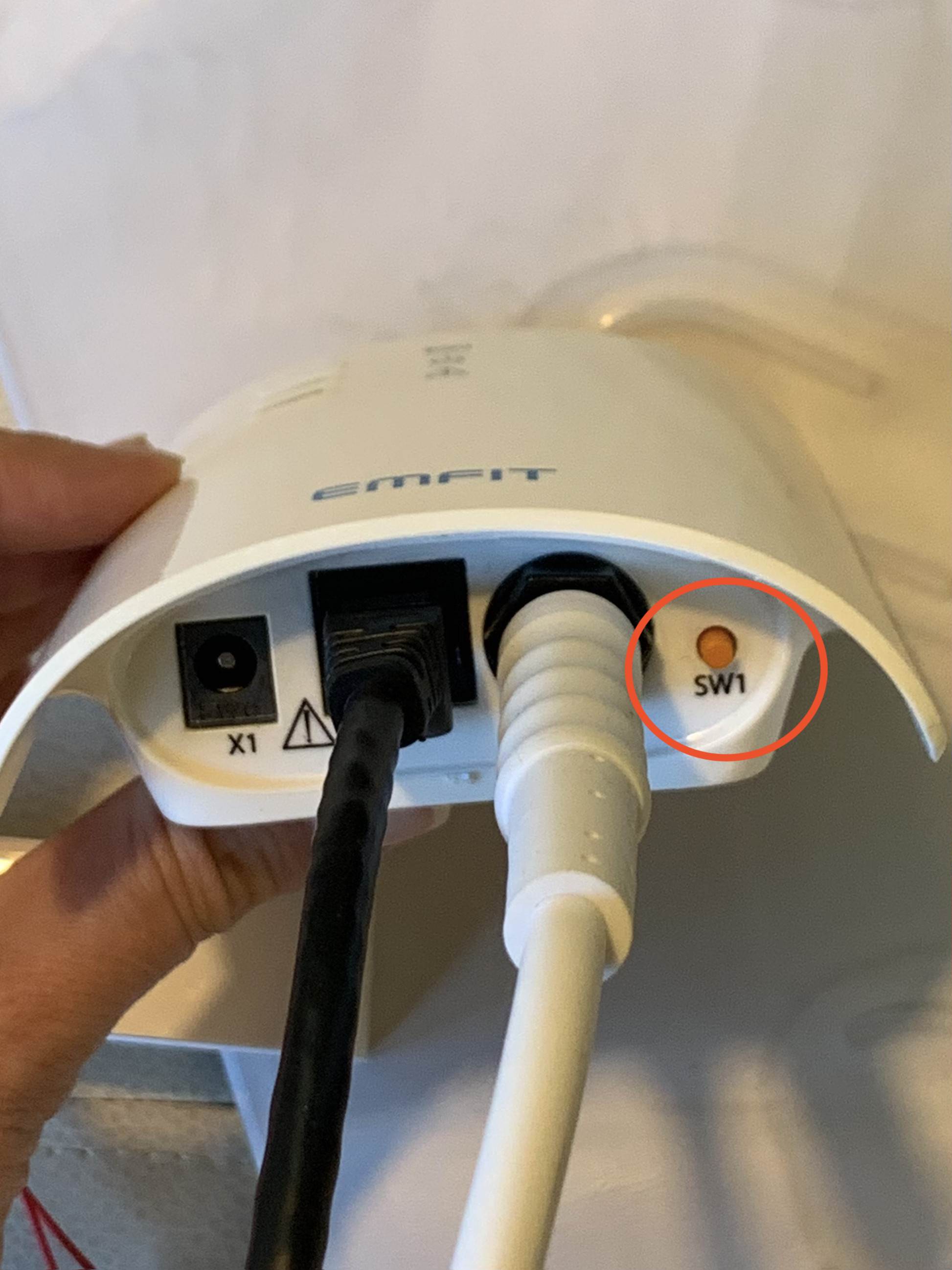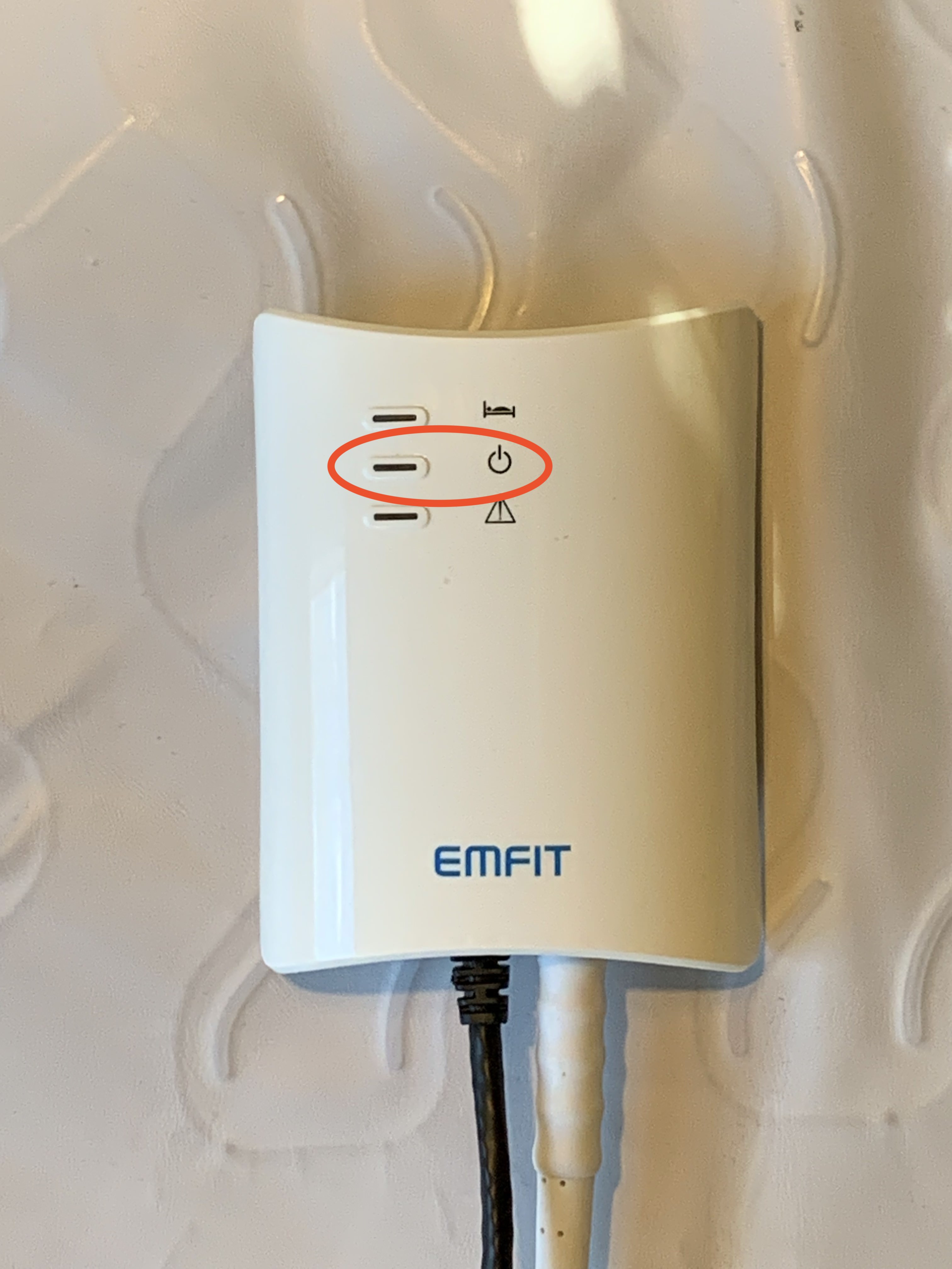 The final troubleshooting task is to turn the seizure mat control unit off and back on. You'll find the on/off button on the bottom of the control unit near where the cables are connected.