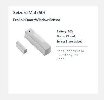 Scroll down to the list of sensors. You should see a sensor that corresponds to the seizure mat. The image will be of a door sensor, as this is what is connected to the mat and is used to send messages to the Hearo Dashboard.